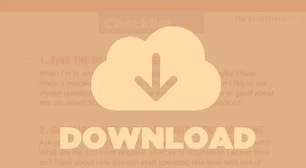 Bezplatný kontrolní seznam krok za krokem, který zahrnuje 14 mých nejlepších tipů a návyků, aby zůstal pozitivní v těžkých dobách ... Uložte jej nebo vytiskněte, abyste jej měli pro svůj každodenní život a pro příštím potřebování.
